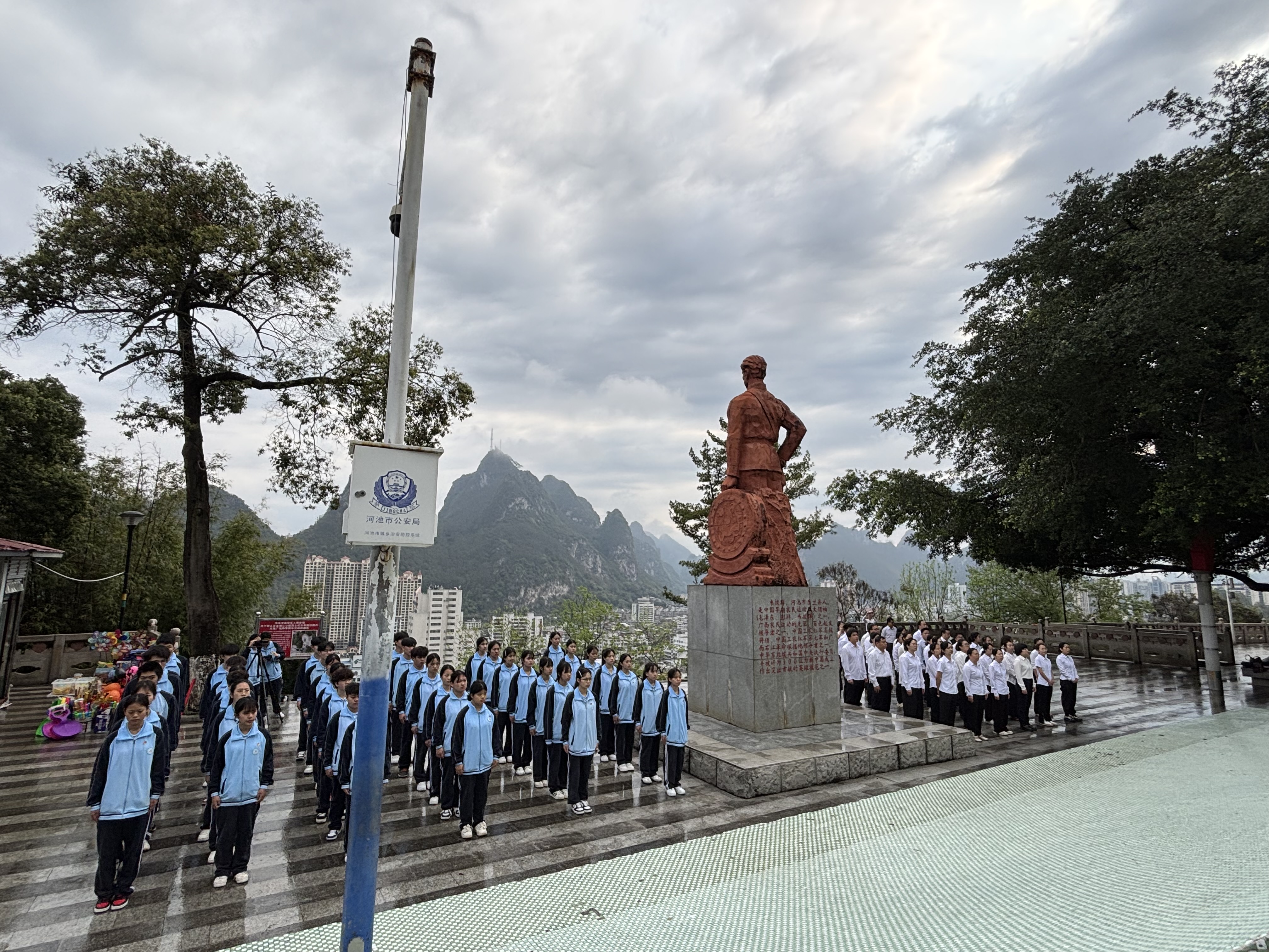 4月1日上午,河池市卫生学校在金城江公园烈士陵园举行“清明祭英烈 薪火永相传”党团主题教育活动。学校党员代表、团员代表齐聚陵园,共同缅怀革命先烈,传承红色基因。