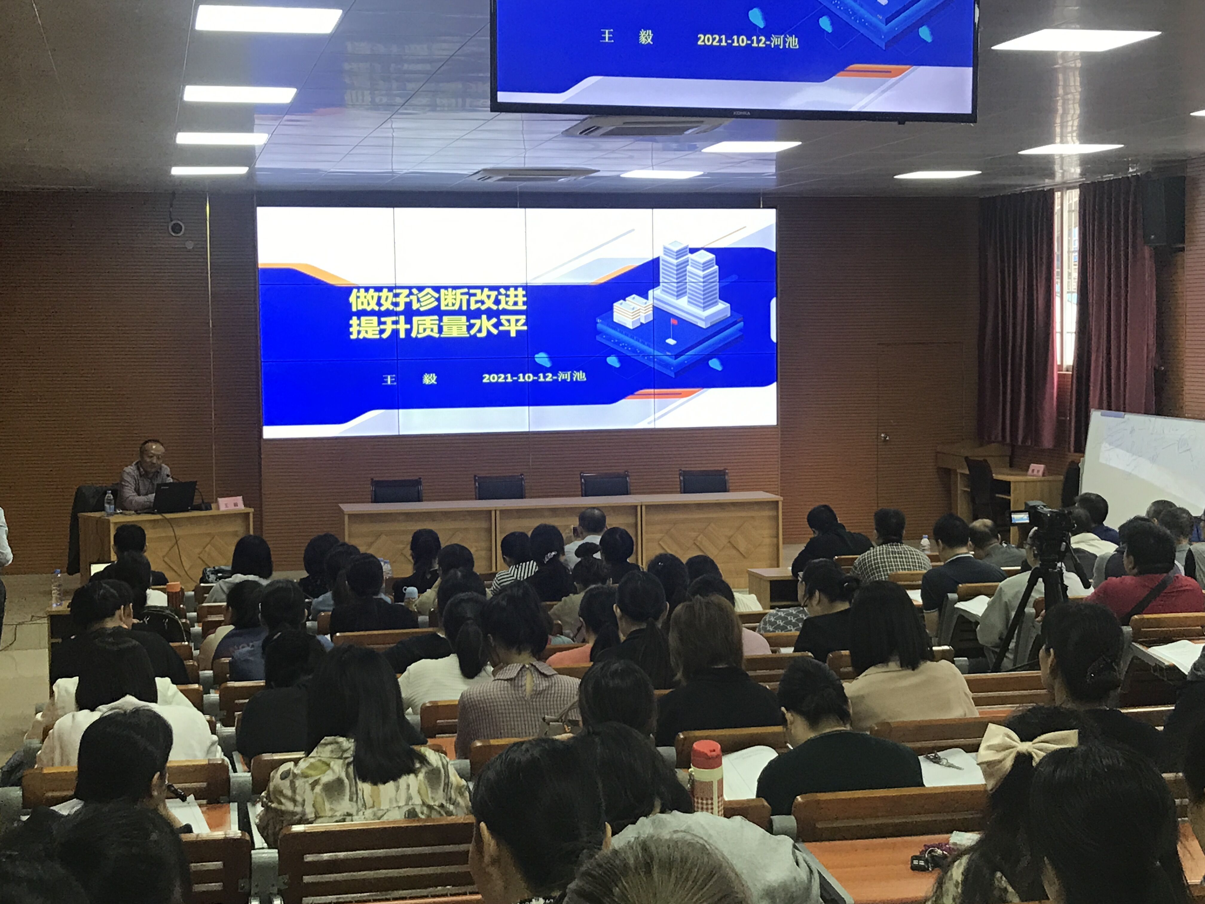 为进一步推进教学诊改工作,加强内部质量保证体系建设,10月12日,我校邀请全国职业院校教学诊改专家委员会副主任兼平台组组长王毅教授到校进行教学诊改专题讲座,全体教职员工到场聆听。